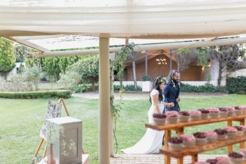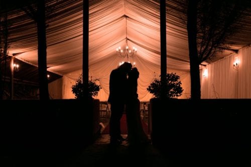 Our serene country wedding chapel provides a magical experience thanks to its lavish back-lit draping, rustic chandeliers and a touch of the outside gardens forming one of the sidewalls. The chapel is covered by a full roof installation.